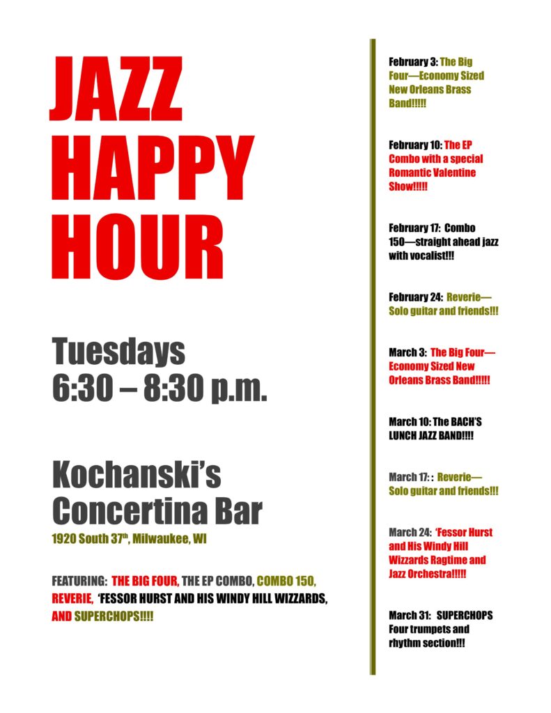 Email listings, events and recurring gigs to: jazzunlimitedmke@gmail.com